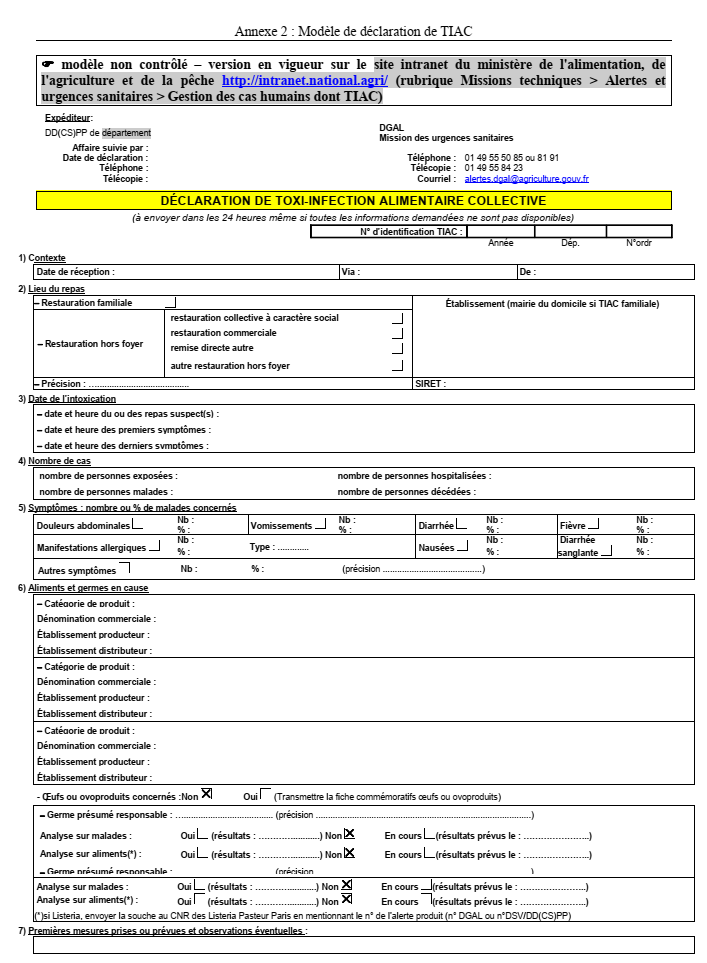 Annexe 6 - Modèle de rapport d'investigation d'une TIAC