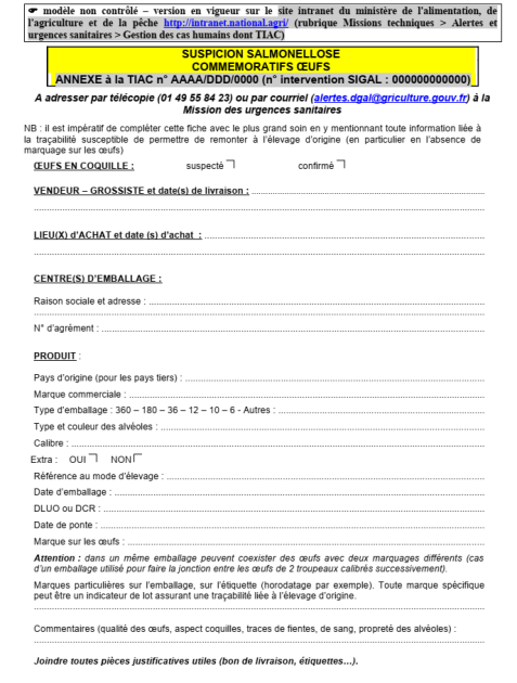 Annexe 4 - Modèle d'enquête traçabilité sur les œufs