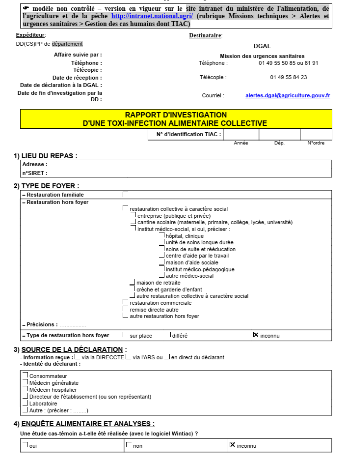 Annexe 6 - Modèle de rapport d'investigation d'une TIAC