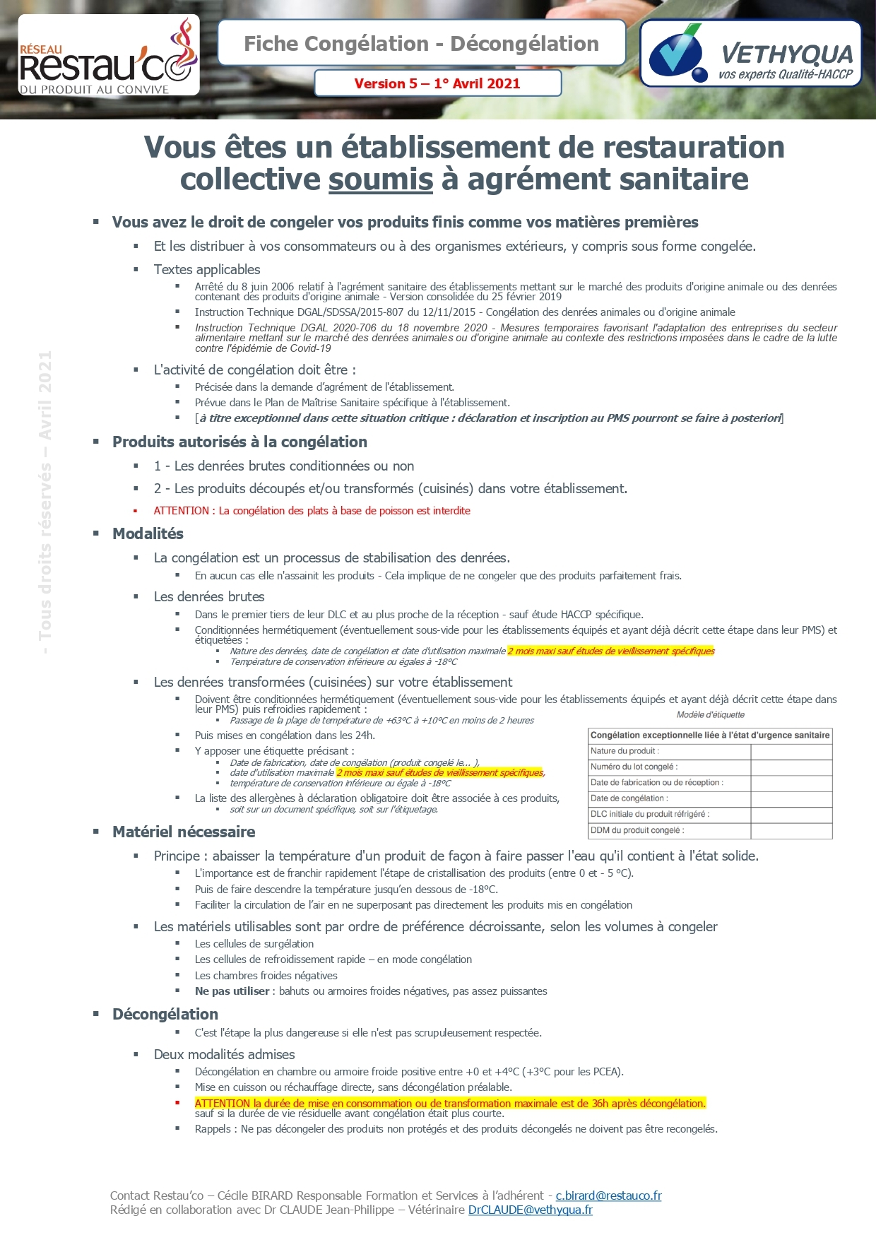 Fiche « Congélation-Décongélation » en urgence - Actualisée au 1° Avril 2021⚓