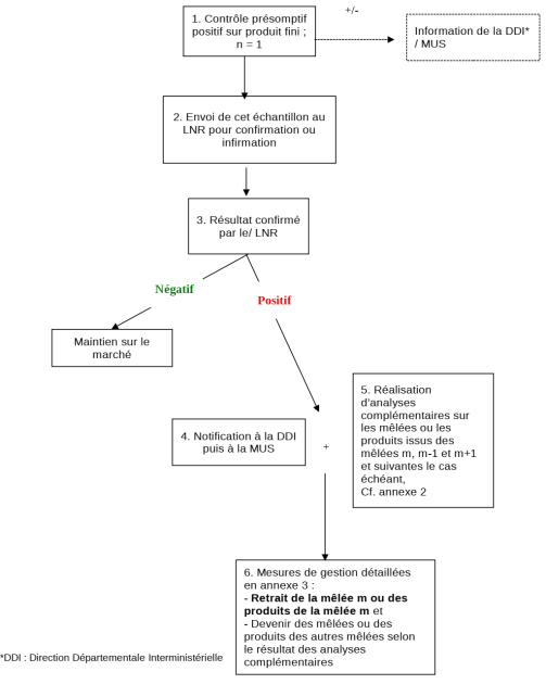 Les annexes 2 et 3 détaillent les méthodes d’analyse et le plan d’échantillonnage à réaliser par le fabricant suite à un résultat confirmé positif.